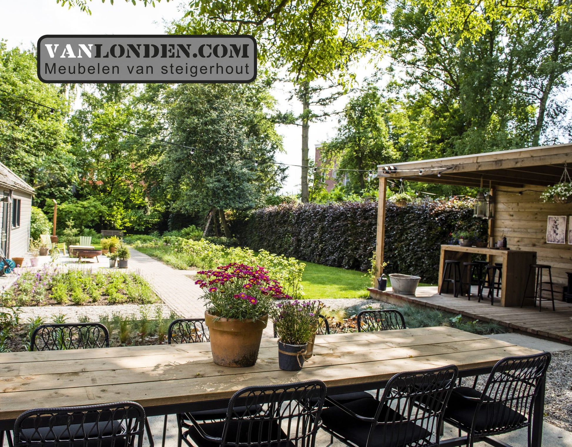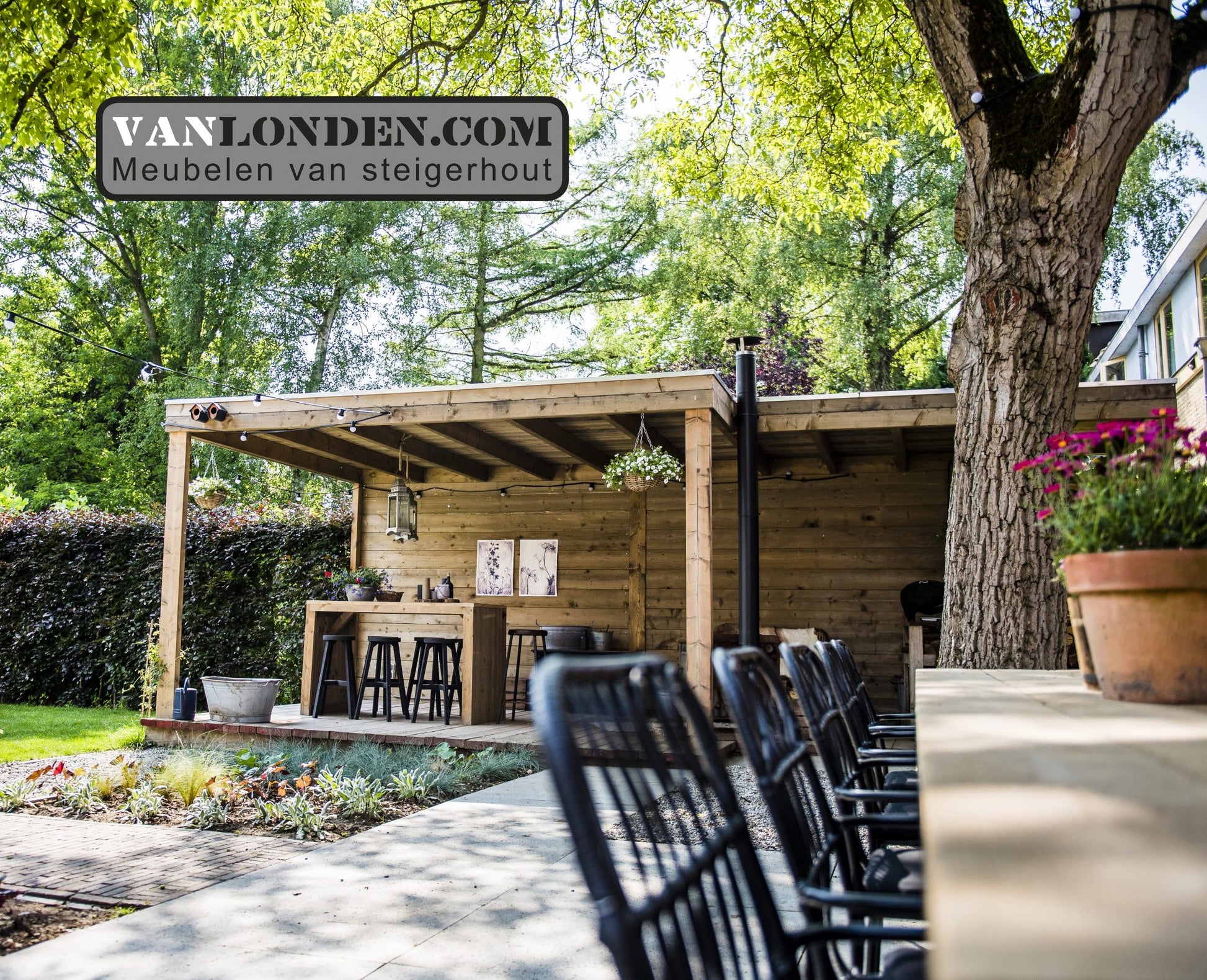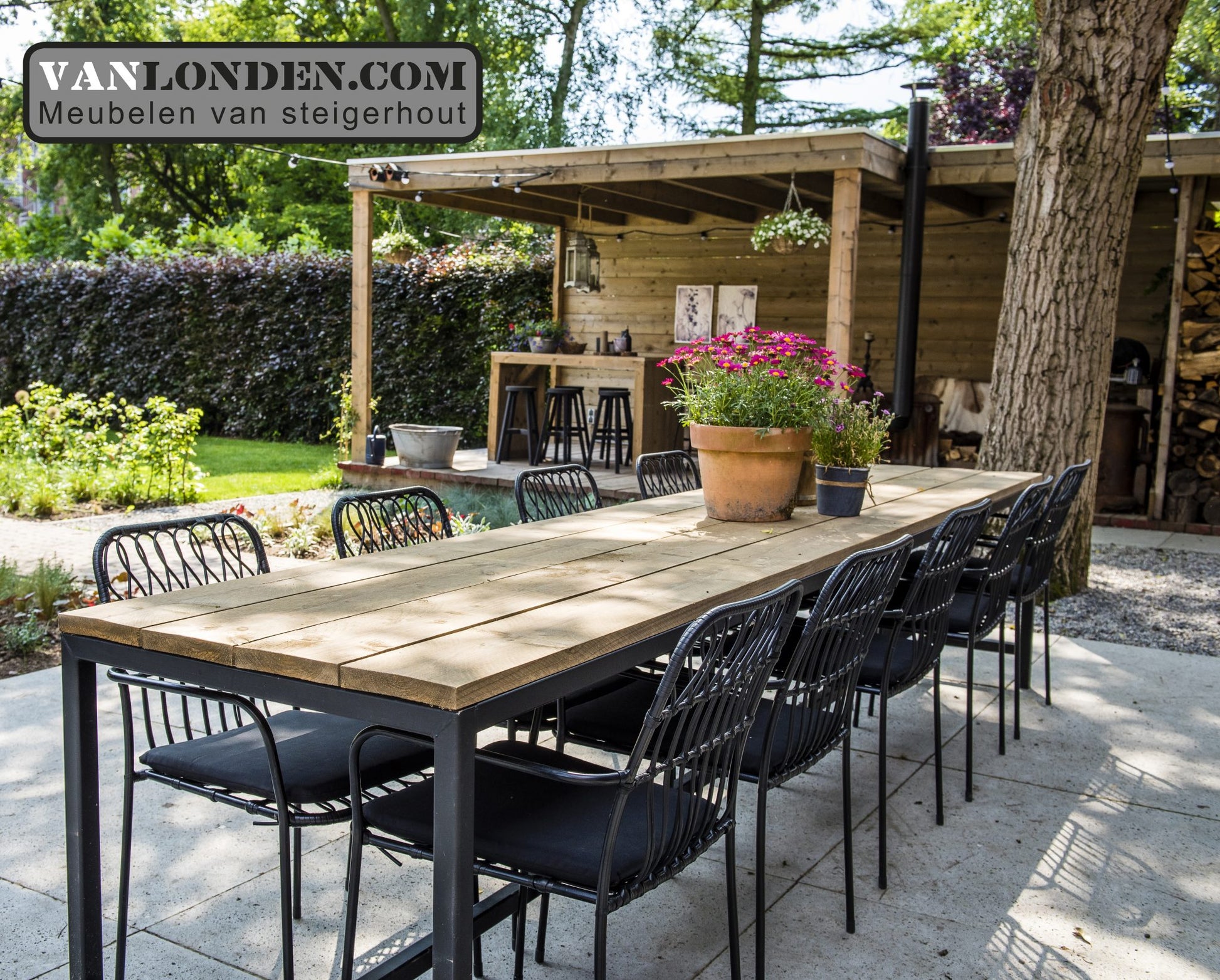 Steigerhouten overkapping en eettafel