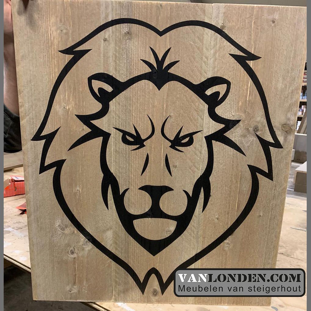 Steigerhoutenpaneel met opdruk van een leeuw, hoe stoer is dat niet in jouw kamer!