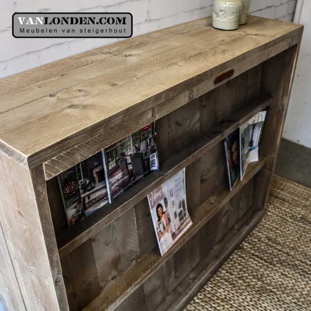 Deze robuuste steigerhouten tijdschriftenkast is niet alleen handig om al je tijdschriften of boeken in op te bergen, maar is ook heel geschikt als roomdivider.