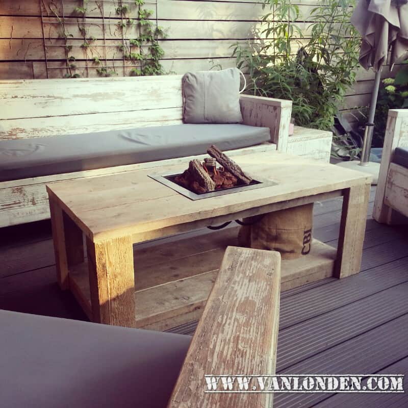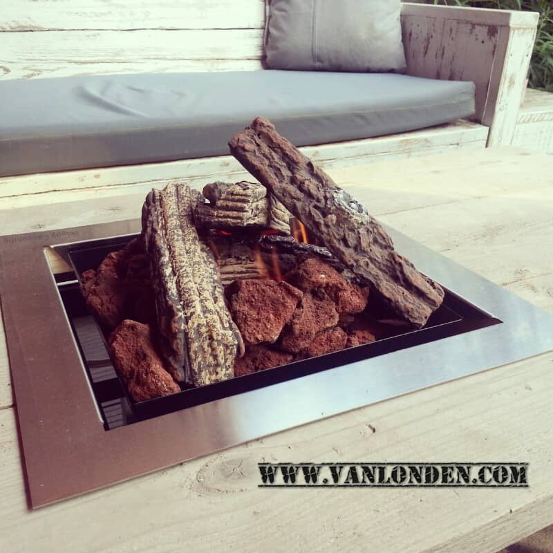Sfeervolle vuurtafel, om tijdens de wat koudere voor- of nazomer dagen heerlijk buiten zitten.