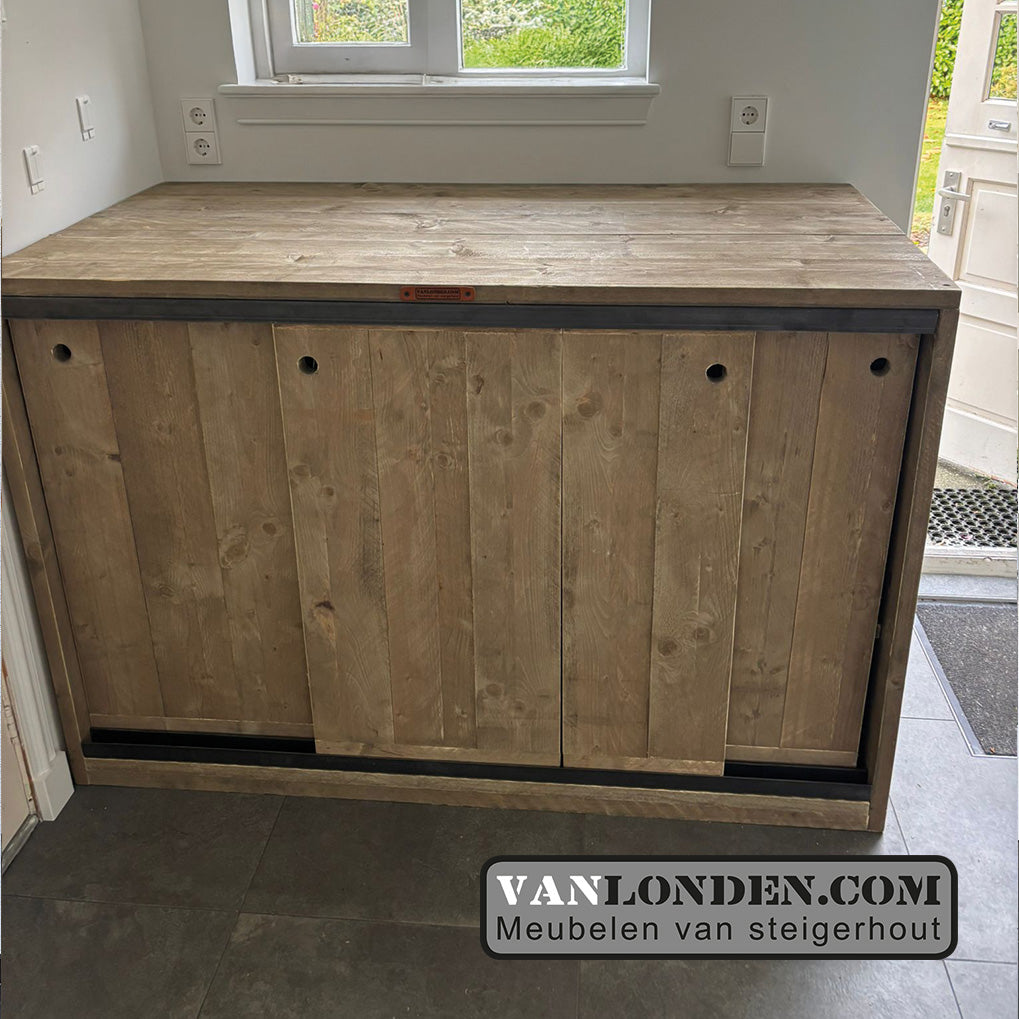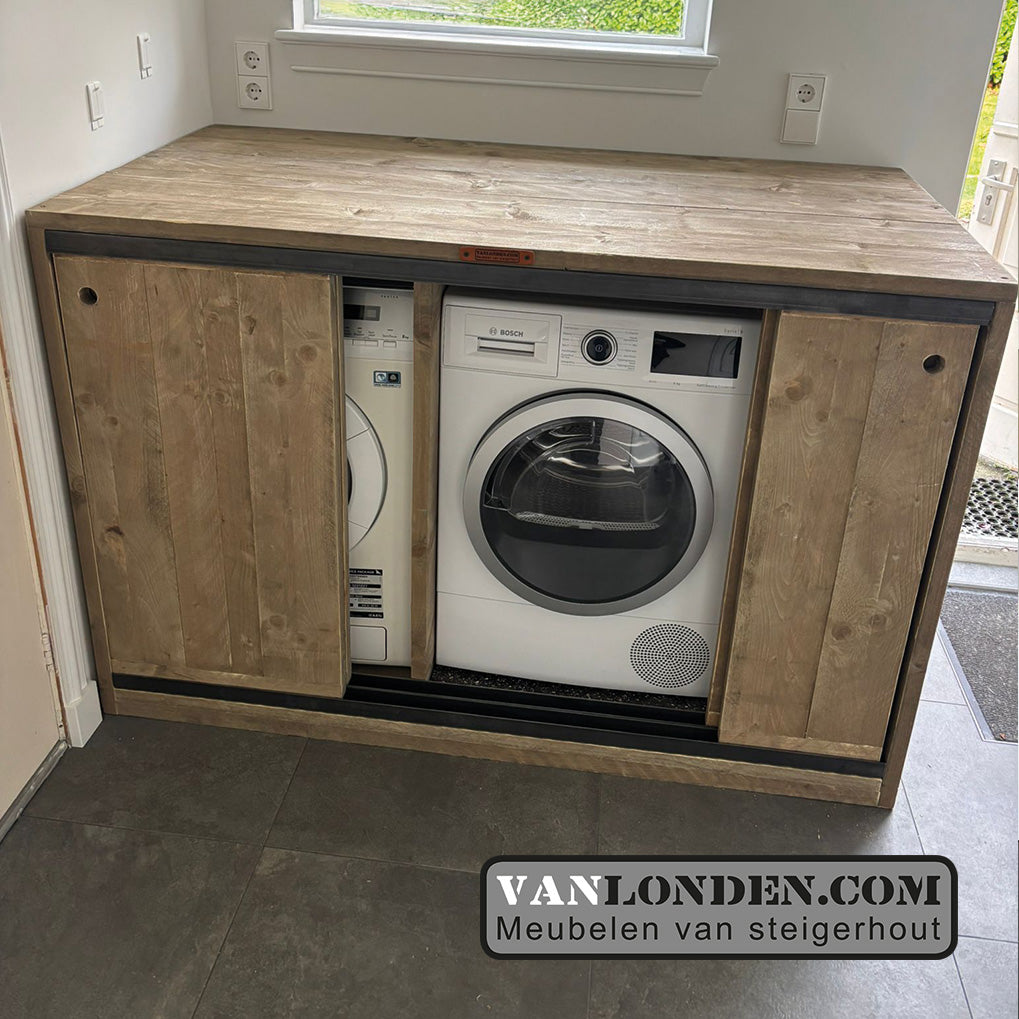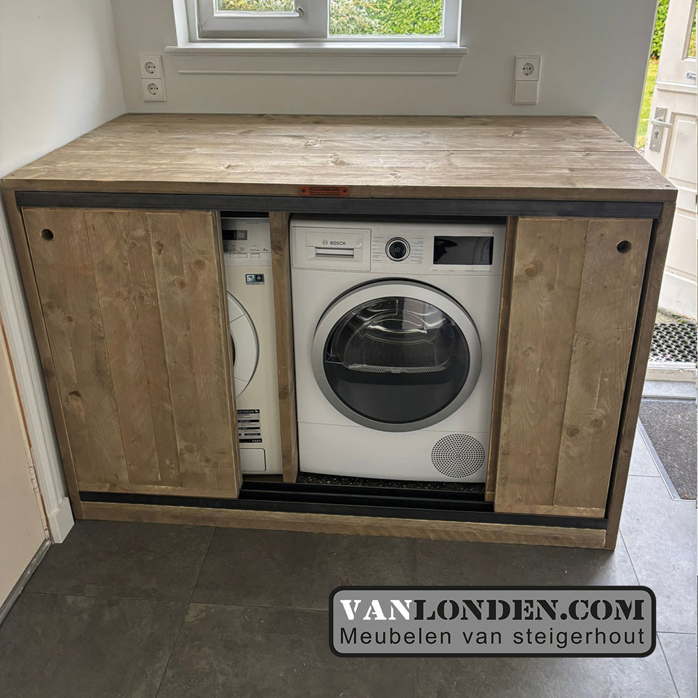 Steigerhouten wasmachine ombouw met schuifdeuren