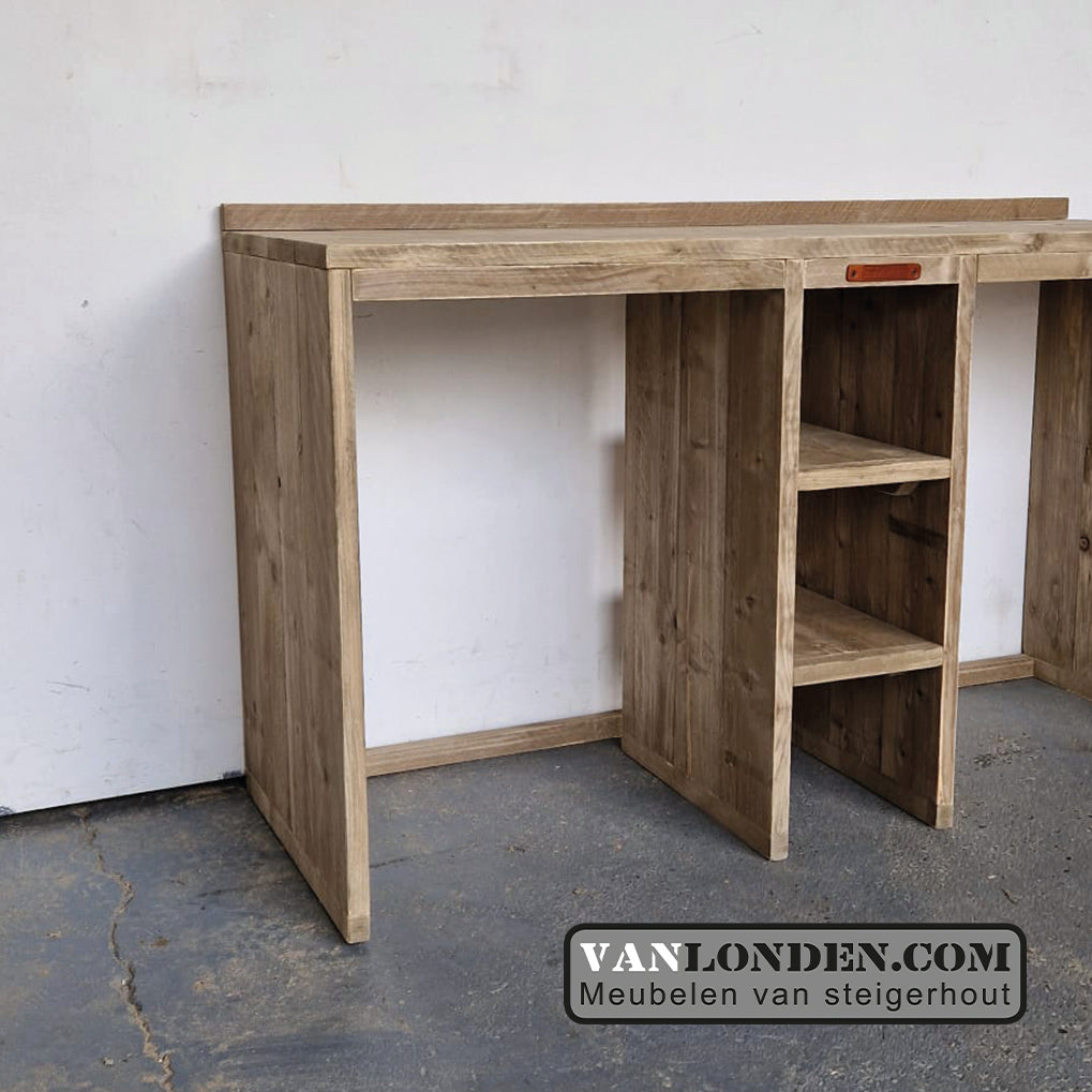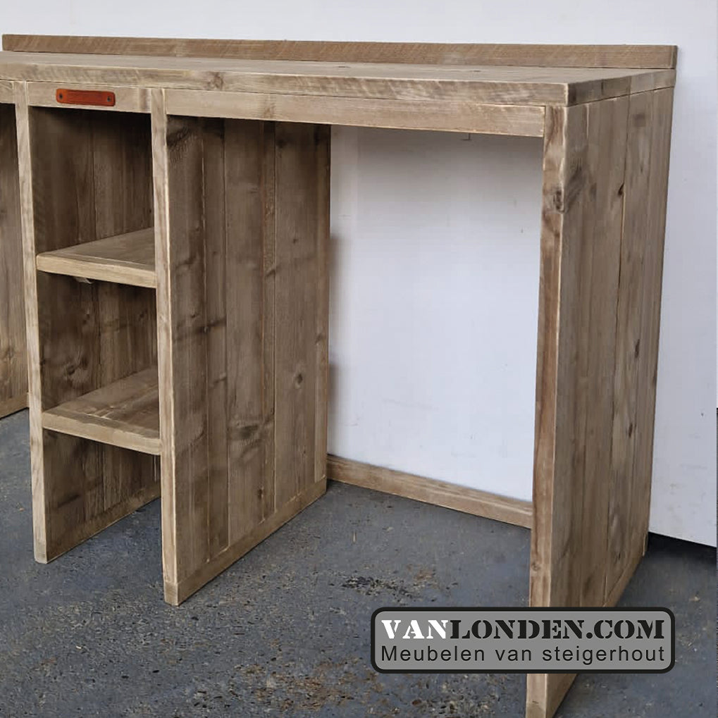 Handige steigerhouten wasmachine en droger ombouw, een mooie oplossing voor een opgeruimde wasruimte. Door de extra opbergvakken er tussen ook ruimte voor wasmiddelen of benodigdheden, waardoor alles bij de hand ligt.