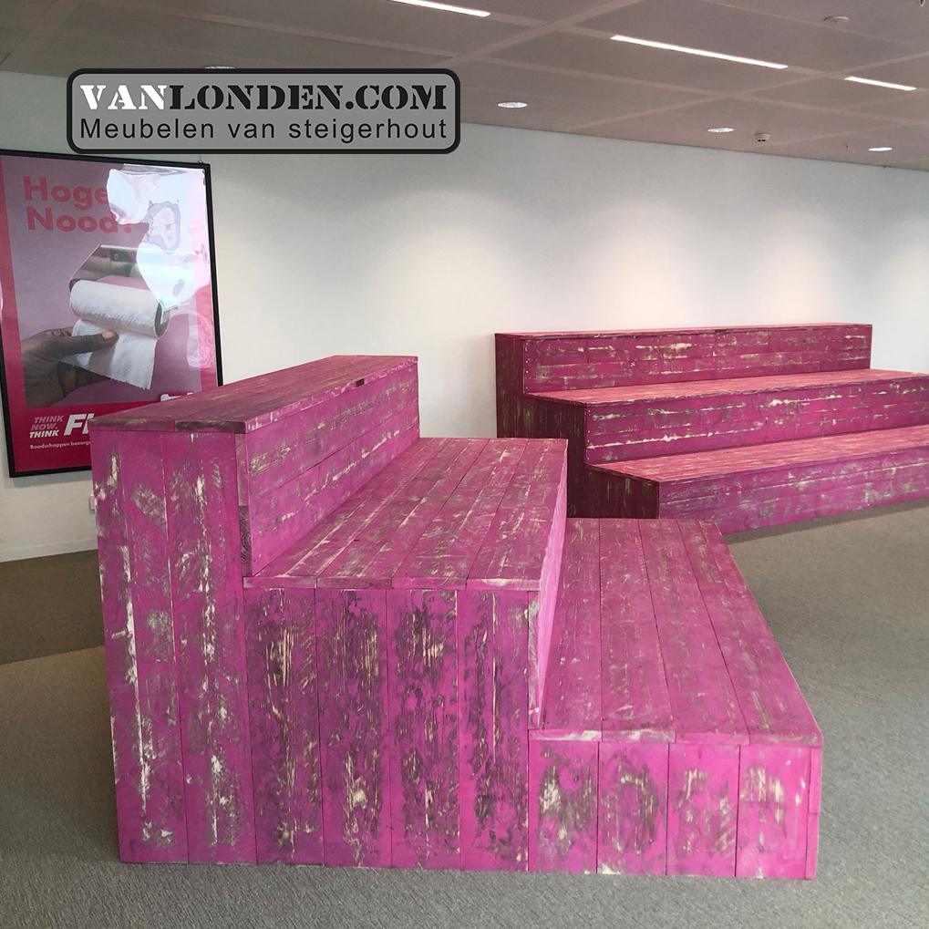 Voor het kantoor van Flink hebben we een mooie steigerhouten inrichting gerealiseerd. Natuurlijk helemaal in Flink stijl.