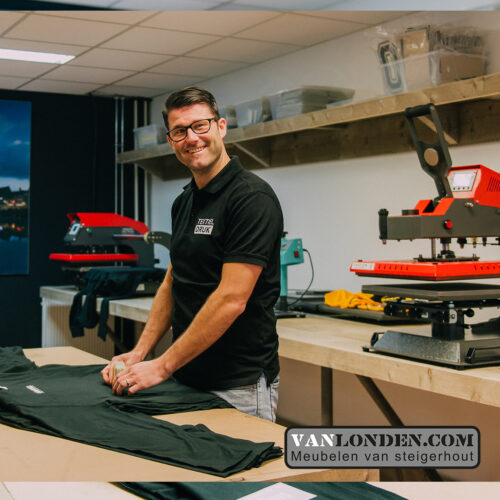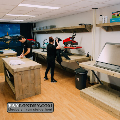 Vanlonden.com heeft voor Textiel Druk een mooie interieur inrichting mogen maken. Textiel Druk produceert en bedrukt logo’s (transfers) voor alle soorten kleding, zoals sportkleding, werkkleding/bedrijfskleding of promotioneel textiel.