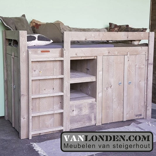 Ben je op zoek naar een steigerhouten kinderbed? Dan zit je hier goed. Bij VanLonden.com ben je aan het juiste adres voor de leukste en gaafste kinderbedden, gemaakt van steigerhout. Wij maken een kinderbed op maat zodat het perfect past in zowel een kleine als een grotere slaapkamer. Daarnaast is het mogelijk om een bijpassend nachtkastje, een kledingkast of een bureau voor je kind te maken.